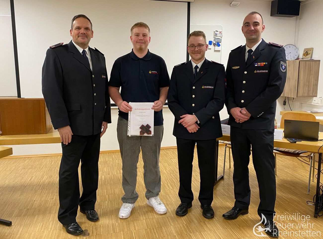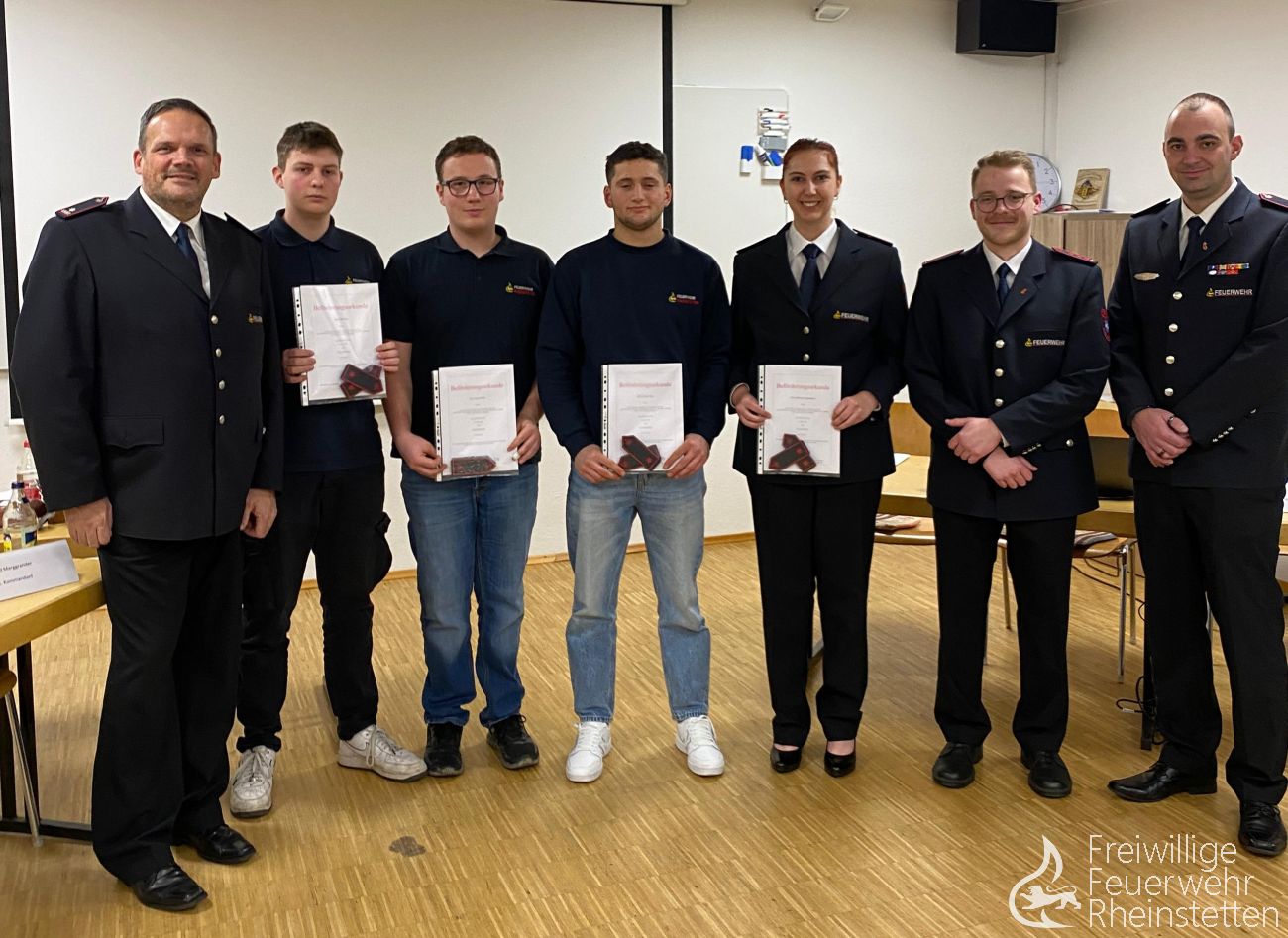 - Theo Neu, Ann-Kathrin Peters, Katharina Schumacher, Edonis Ukaj und Simon Wüst wurden zu Feuerwehrmännern/-frauen ernannt