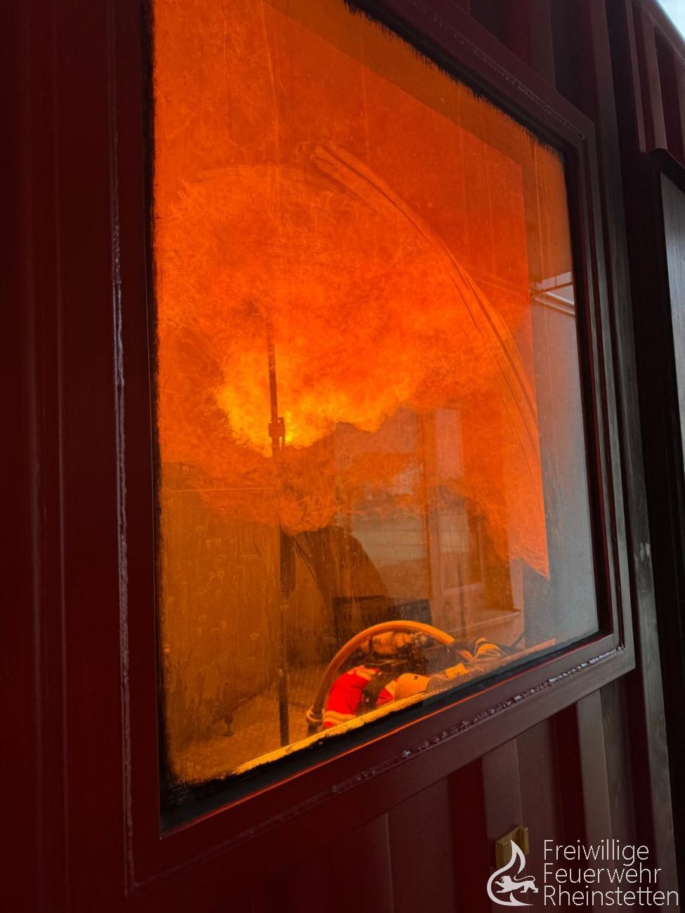 Bei Temperaturen von bis zu 350°C, lauter Geräuschkulisse und mehreren Rauchgasdurchzündungen galt es dann, die Menschenrettung und die anschließende Brandbekämpfung im Inneren des gasbefeuerten Brandcontainers durchzuführen.