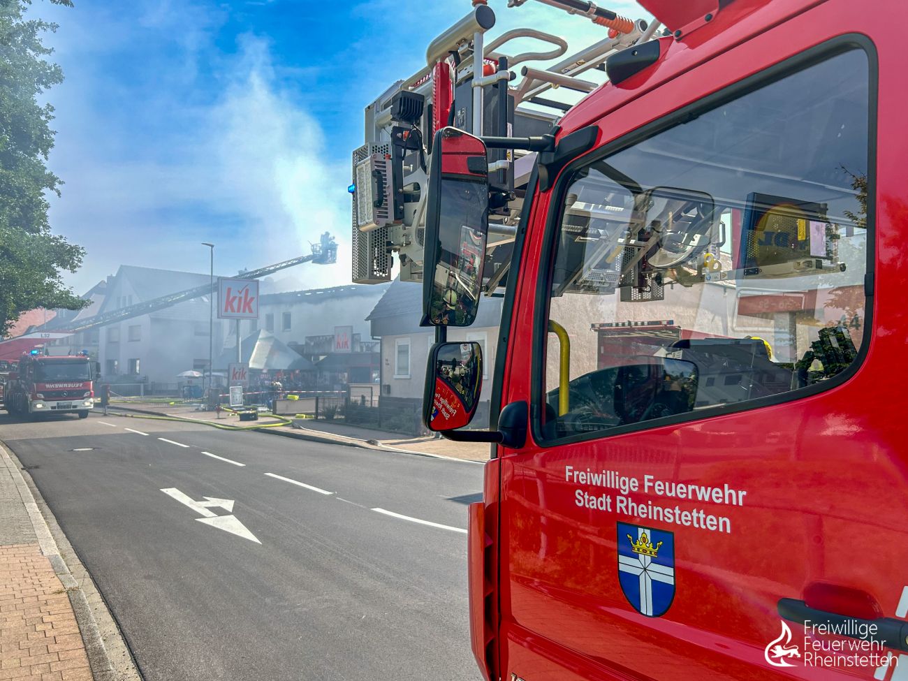 Am Dienstagnachmittag um 14:51 Uhr wurde die Abteilung Rheinstetten zur Überlandhilfe für die Feuerwehr Malsch zu einem Gebäudebrand in Malsch alarmiert. Zahlreiche Einsatzkräfte kämpften gegen einen Brand in einem Geschäftshaus und hatten zur Unterstützung eine weitere Drehleiter und ein Löschgruppenfahrzeug angefordert. Bereits auf der Anfahrt war eine große Rauchsäule über Malsch sichtbar. Gerade als die Rheinstettener Einsatzkräfte in Malsch angekommen waren, wurde ein größerer Einsatz in der Stadtmitte gemeldet, bei welchem ein Fahrzeug mit einer Straßenbahn zusammengestoßen war. Unverzüglich machten sich der Kommandowagen und das Löschgruppenfahrzeug auf den Rückweg nach Rheinstetten. Kurze Zeit später konnte auch die Drehleiter ohne Tätigkeit aus dem Einsatz in Malsch herausgelöst werden und die Einsatzstelle in Rheinstetten anfahren.