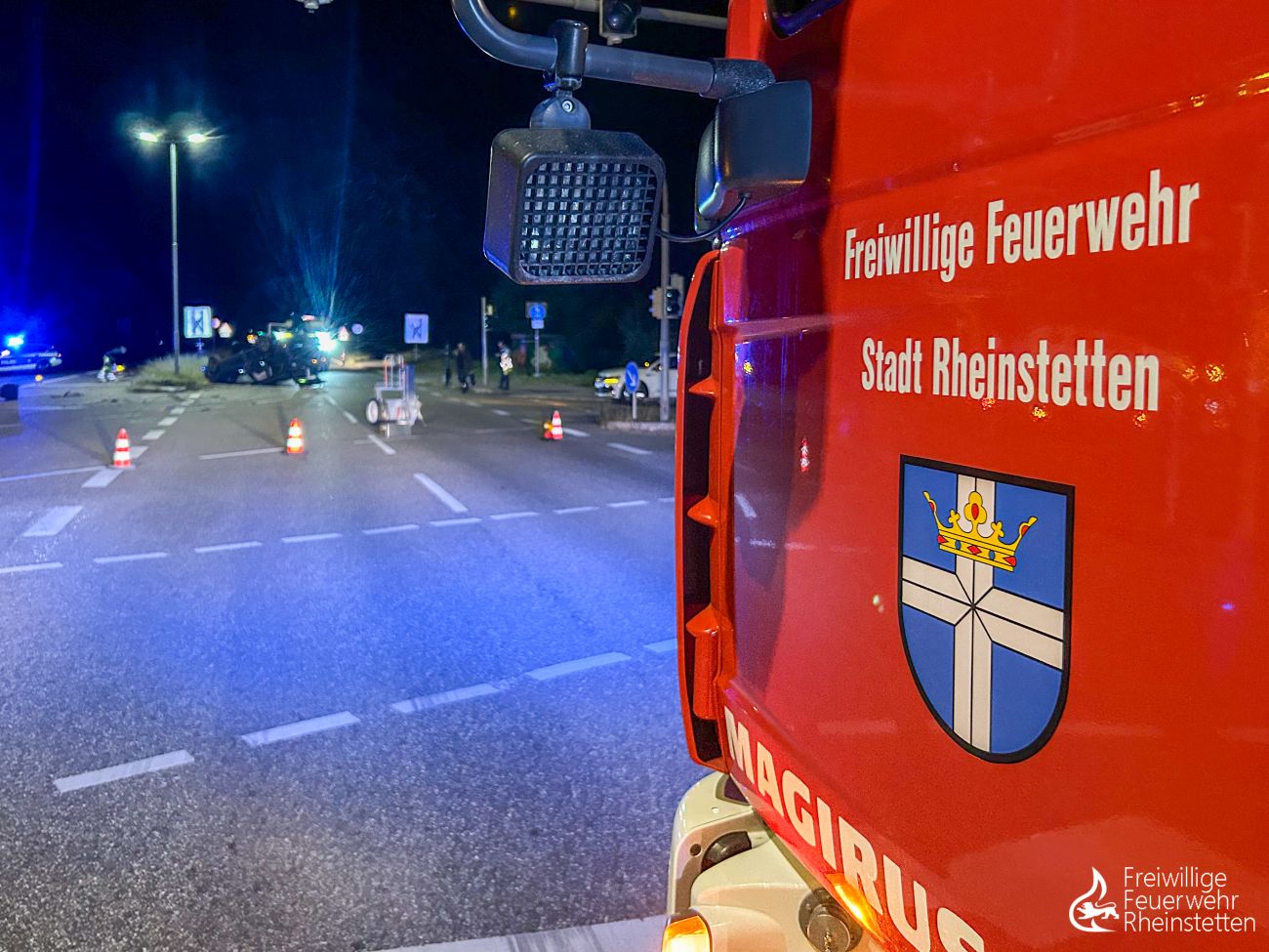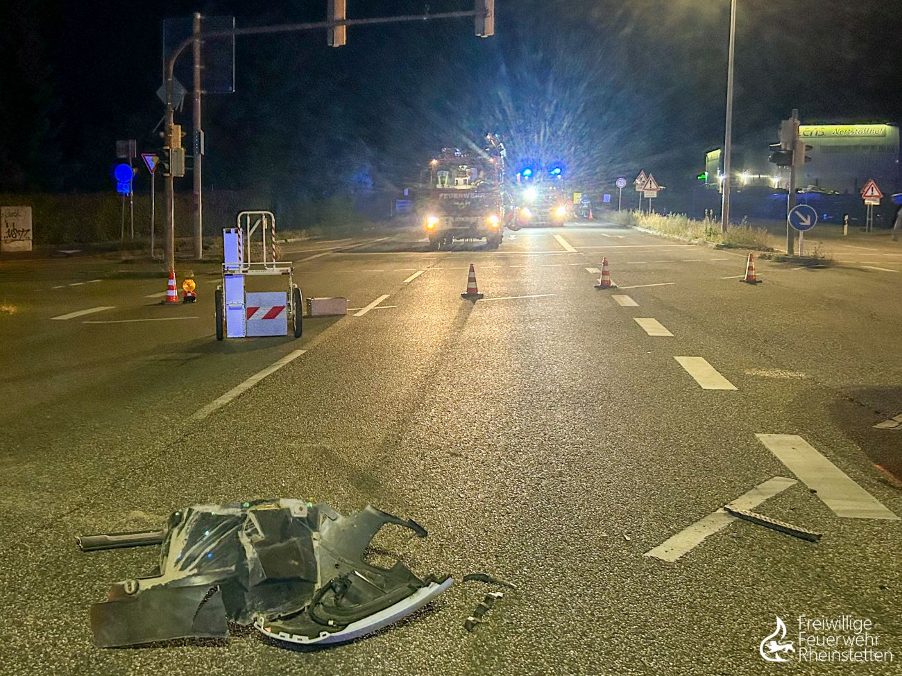 Am späten Samstagabend kurz nach 22 Uhr wurde die zuständige Alarmgruppe der Abteilung Rheinstetten zu einem Verkehrsunfall auf die Bundesstraße 36 alarmiert. Die Polizei hatte die Feuerwehr angefordert, da in Folge eines Verkehrsunfalles ein in Mitleidenschaft gezogener Ampelmast entfernt werden musste. Zunächst wurde die Einsatzstelle gegen den fließenden Verkehr gesichert und ausgeleuchtet, bevor mit einem Winkelschleifer der betroffene Ampelmast entfernt und gesichert wurde. Die Einsatzstelle wurde bis zum Abtransport der beiden beschädigten unfallbeteiligten Fahrzeuge abgesichert. Während der Arbeiten an der Einsatzstelle musste die Bundesstraße 36 in Fahrtrichtung Rastatt vollgesperrt werden. Die Abteilung Rheinstetten war mit zwei Fahrzeugen vor Ort. Ebenfalls vor Ort waren ein Rettungswagen und ein Streifenwagen.