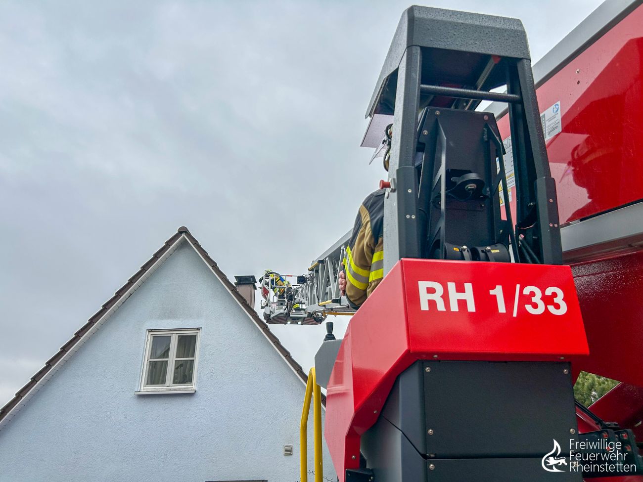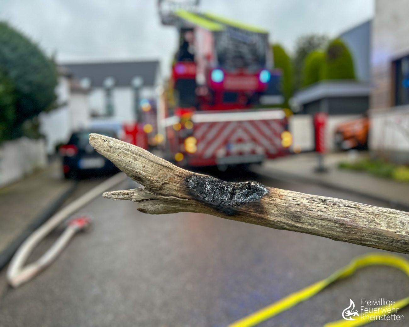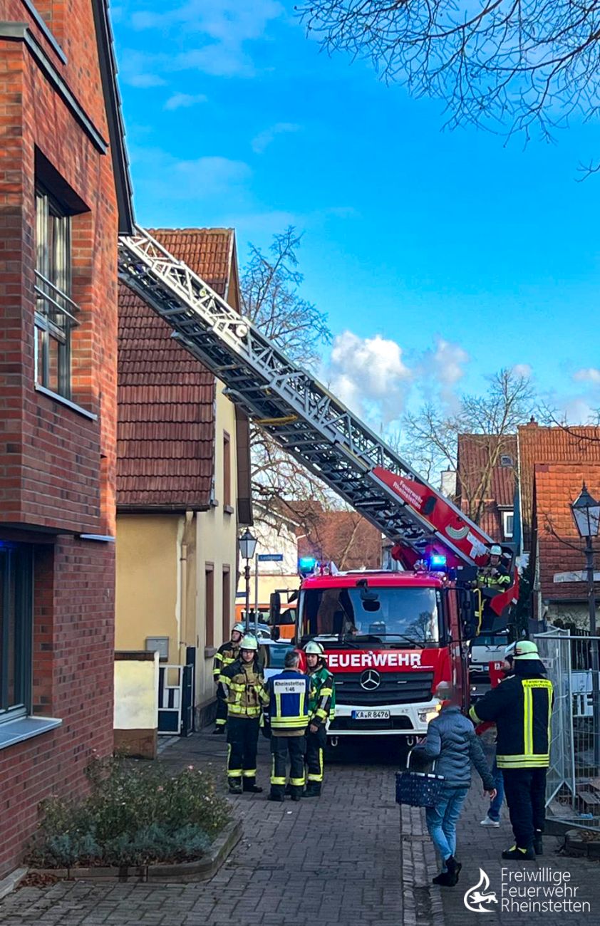 Ein Trupp unter Atemschutz ging beim Eintreffen unverzüglich ins leicht verrauchte Gebäude vor, während außen die Drehleiter in Stellung gebracht wurde, um den Kamin des Einfamilienhauses von oben zu kontrollieren. Unterdessen wurde der Trupp im Inneren schnell fündig und konnte als Ursache für die Verrauchung schwelendes und rauchendes Holz in der Nähe des Kaminofens entdecken. Das kleine Stück Holz wurde nach außen gebracht und des Gebäude mit Lüftern entraucht. Wieder einmal zeigte sich, wie wichtig funktionierende Heimrauchmelder sind, um rechtzeitig und besonders im Schlaf vor gefährlichem Brandrauch gewarnt zu werden. Alle Beteiligten kamen mit einem Schrecken davon. Die Feuerwehr Rheinstetten war mit fünf Fahrzeugen an der Einsatzstelle. Ebenfalls vor Ort waren zwei Rettungswagen und ein Organisatorischer Leiter des Rettungsdienstes, sowie die Polizei.