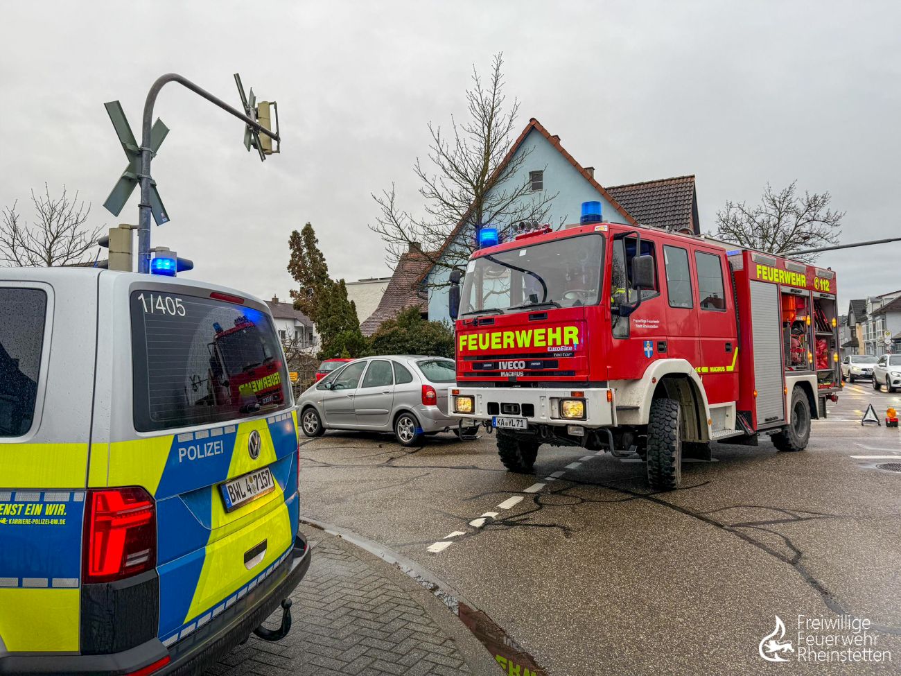 Auf dem Rückweg des vorangegangenen Einsatzes ereignete sich vor den Augen der Einsatzkräfte der Abteilung Neuburgweier ein Verkehrsunfall im Stadtteil Forchheim. An der Kreuzung Karlsruherstraße / Hauptstraße hatte ein abbiegendes Fahrzeug einen Fußgänger erfasst. Sofort übernahmen die Einsatzkräfte die Erstversorgung der verletzten Person und sicherten im weiteren Einsatzverlauf die stark frequentierte Kreuzung für die Polizei ab. Über Funk wurde das Löschgruppenfahrzeug der Abteilung Neuburgweier anschließend vom Einsatzleitdienst zu einem weiteren Verkehrsunfall, dieses Mal auf der L566 in Fahrtrichtung Neuburgweier, alarmiert. Vor Ort galt es die Einsatzstelle abzusichern und aufgrund des Verkehrsunfalls ausgetretene Betriebsmittel abzustreuen. Um 14:06 Uhr wurde der Einsatzleitdienst von der Leitstelle dann zu einer Nachschau an die Unterführung zur Neuen Messe alarmiert. Über den Notruf war gemeldet worden, dass dort kurzzeitig Rauch aufgestiegen war, nun aber nichts mehr zu erkennen sei. Bei der Erkundung vor Ort konnte festgestellt werden, dass Jugendliche Feuerwerk abgebrannt hatten und der Rauch in die Unterführung gezogen war. Außer einem Gespräch mit den einsichtigen Jugendlichen, musste die Feuerwehr nicht tätig werden. Insgesamt wurden bis zum Montagnachmittag somit fünf Einsätze durch die Feuerwehr Rheinstetten abgearbeitet.
