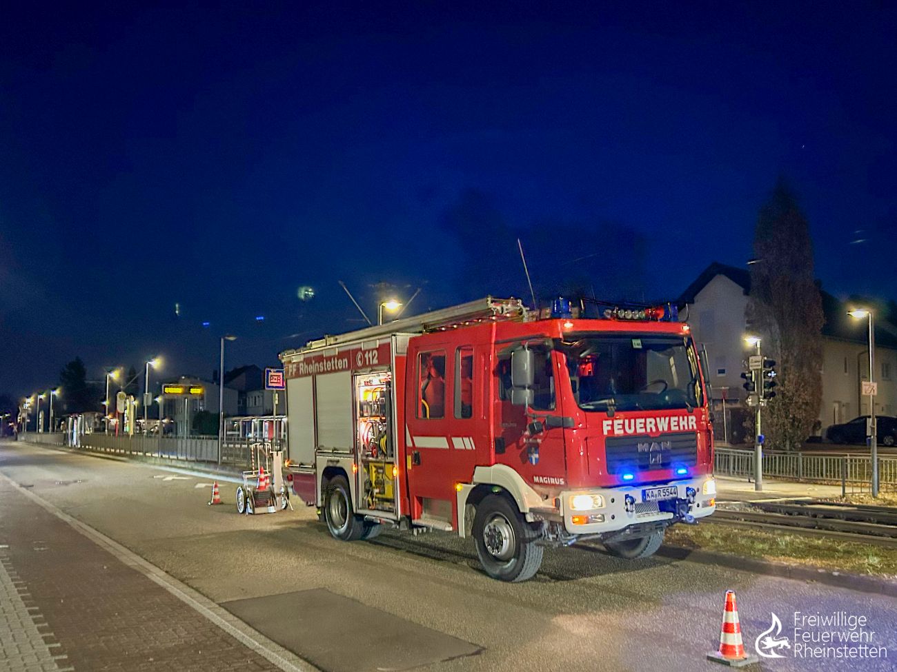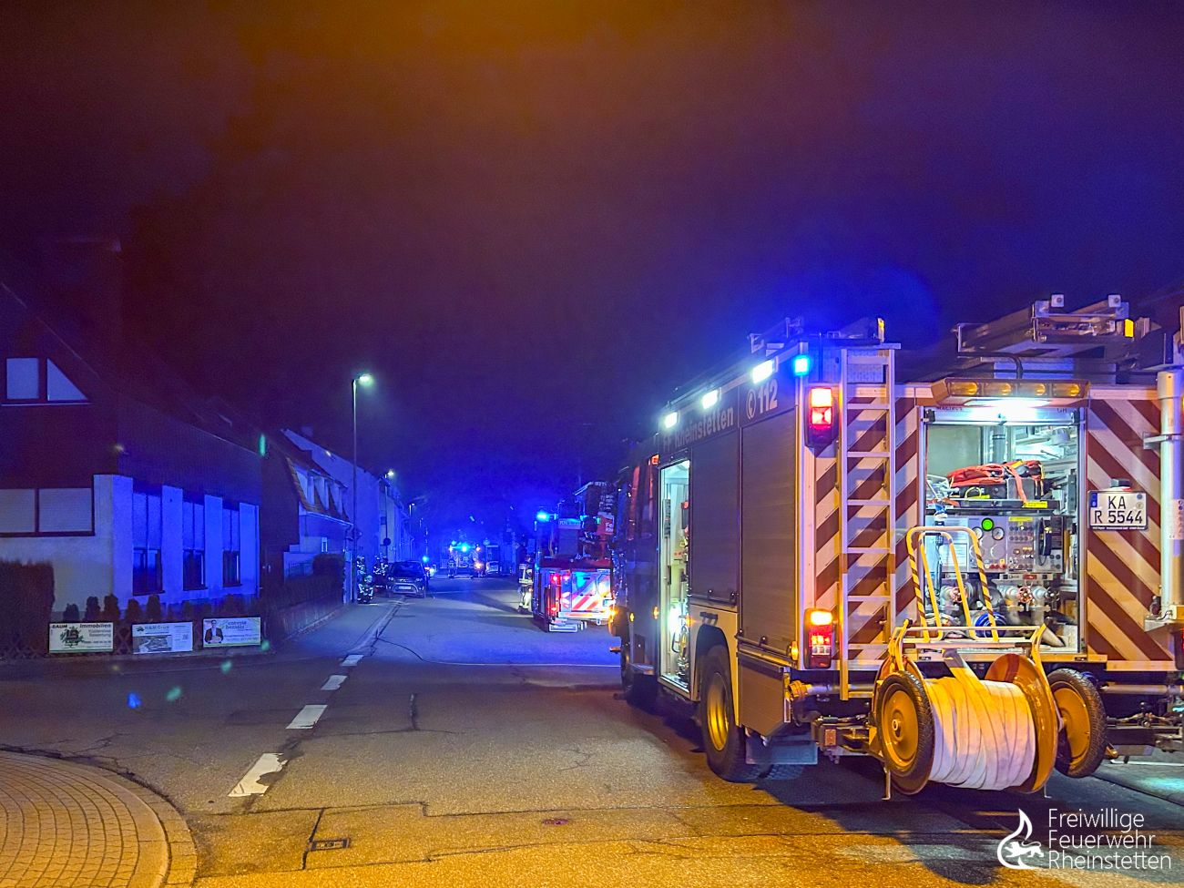 Beide Abteilungen wurden am frühen Sonntagmorgen um 3:48 Uhr zu einem gemeldeten Kaminbrand in den Stadtteil Neuburgweier alarmiert. Aufmerksame Nachbarn auf dem Nachhauseweg hatten einen Kaminbrand an einem Einfamilienhaus bemerkt und die Einsatzkräfte verständigt. In einem Außenkamin hatten sich Asche und Ruß zurückgestaut und in den frühen Morgenstunden entzündet. Durch die Feuerwehr wurde der Ofen abgeschaltet, der Innenbereich des Hauses kontrolliert und der Außenkamin von unten ausgeräumt. Abschließend wurde die Einsatzstelle an die Bewohner übergeben, die einen Schornsteinfeger verständigten. Die Feuerwehr Rheinstetten war mit fünf Fahrzeugen vor Ort. Ebenfalls vor Ort waren ein Rettungswagen und ein Streifenwagen.