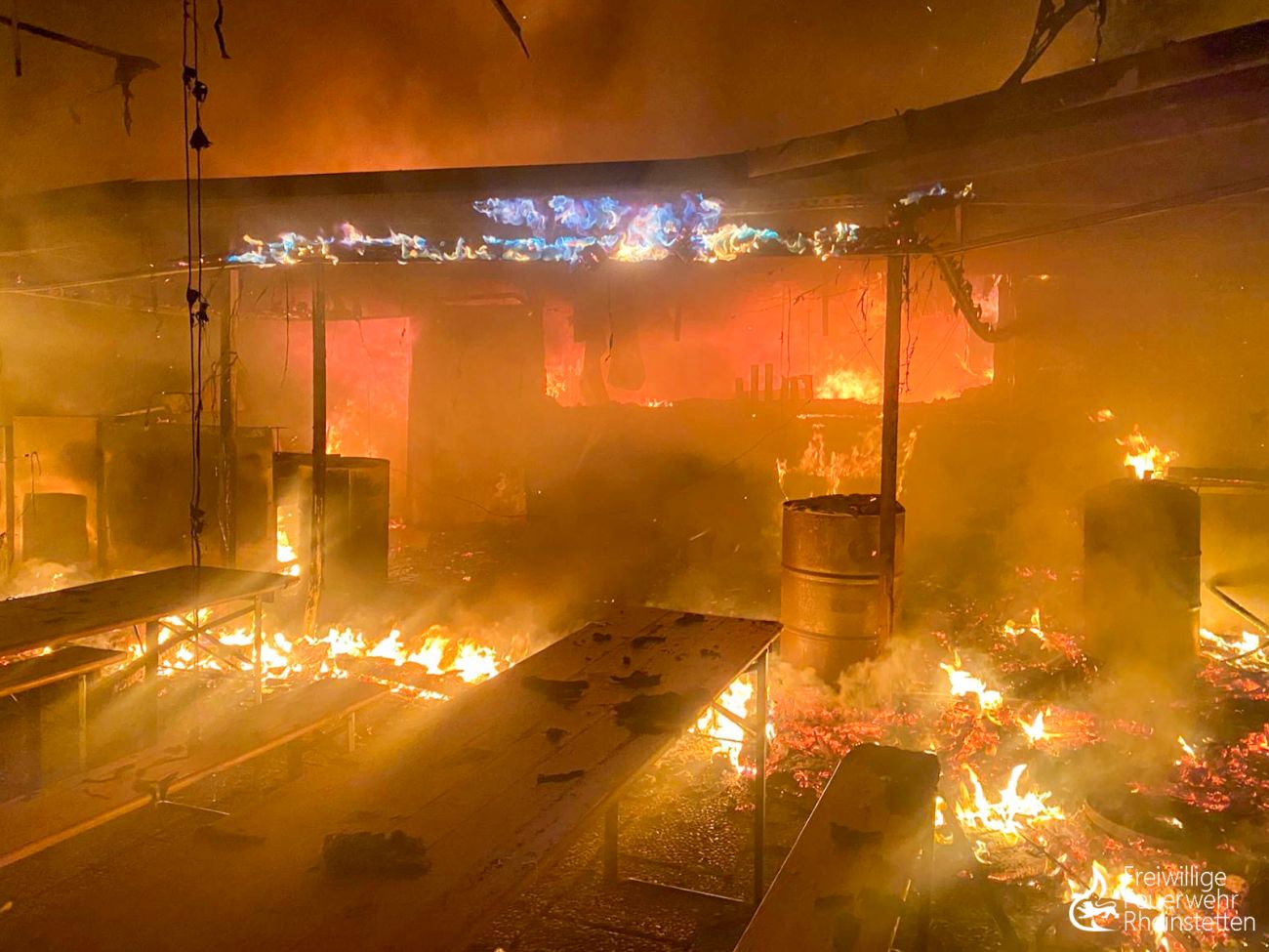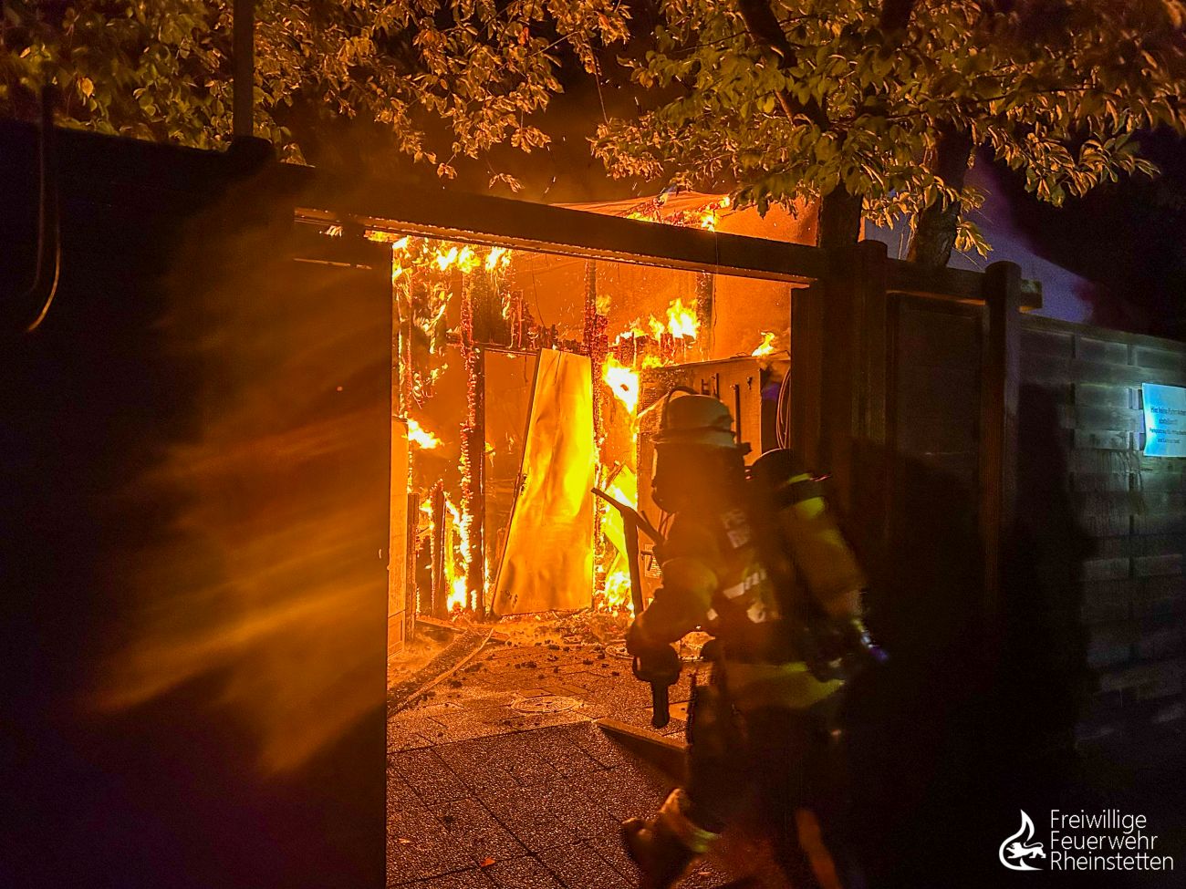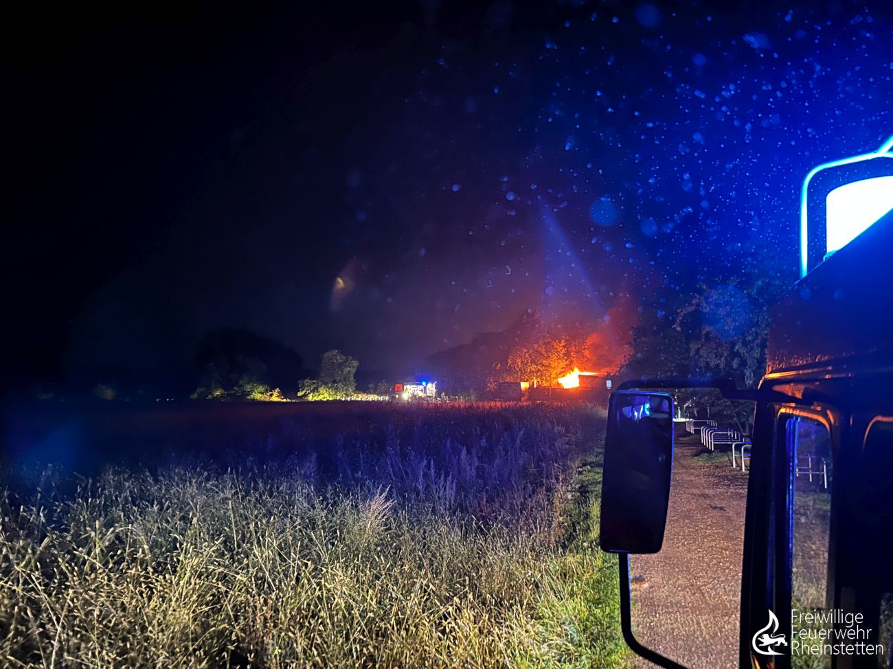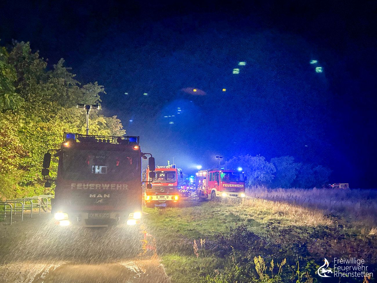 Am frühen Donnerstagmorgen um 2:10 Uhr wurde zunächst die zuständige Alarmgruppe der Abteilung Rheinstetten zu einer unklaren Feuer- und Rauchentwicklung im Freien aus dem Bereich der „Neuen Stadtmitte“ alarmiert, nachdem eine aufmerksame Passantin Feuerschein im Bereich eines nahen Waldstückes bemerkt hatte. Der ersteintreffende Kommandowagen konnte den starken Feuerschein bestätigen und ihn im Bereich des „Seeguggers“ am Epplesee eingrenzen, woraufhin die Alarmstufe erhöht wurde und beide Abteilungen der Feuerwehr Rheinstetten alarmiert wurden. Kurze Zeit später konnte die Lagemeldung gegeben werden, dass die bekannte Strand-Gaststätte in voller Ausdehnung brannte.