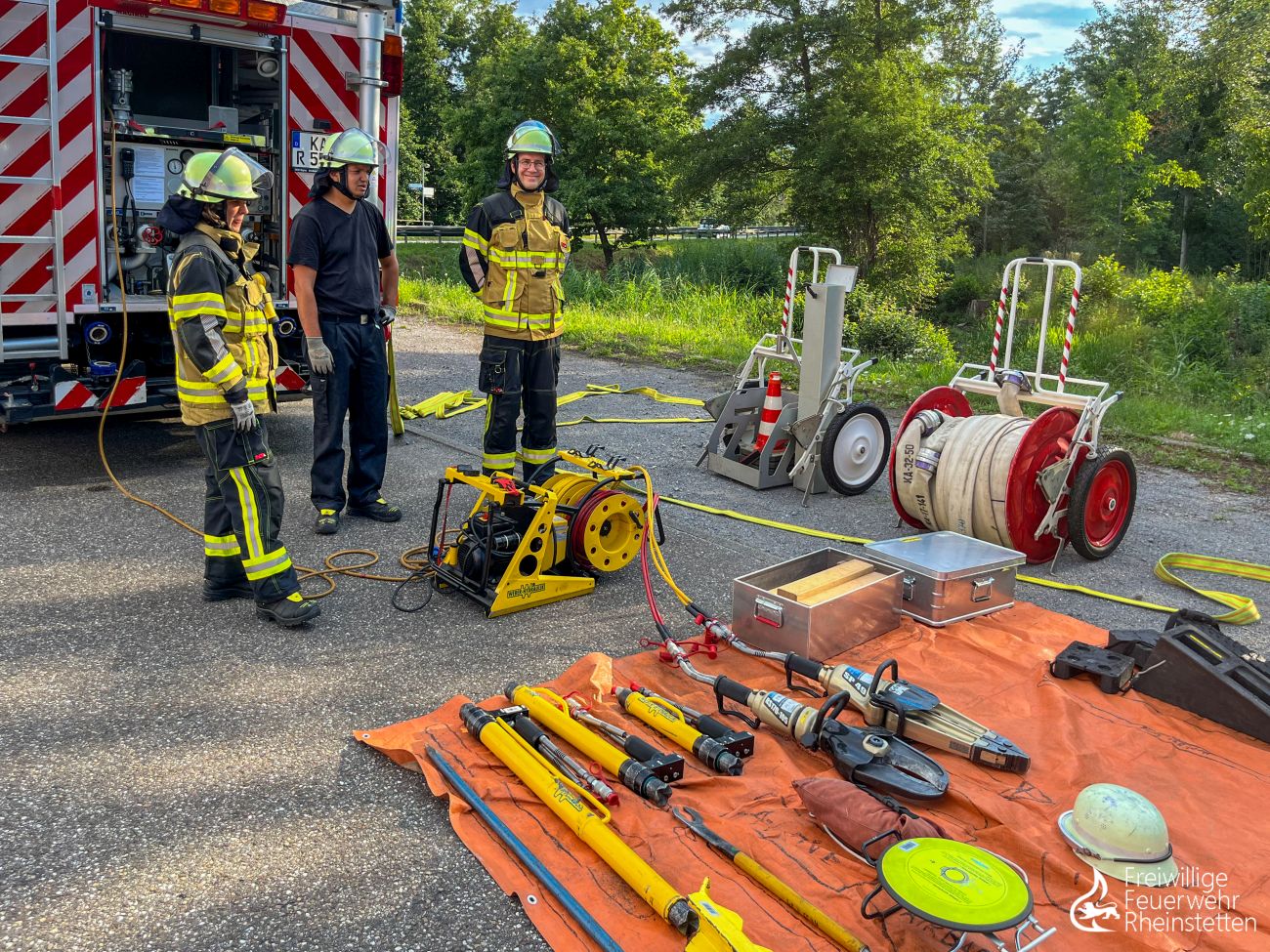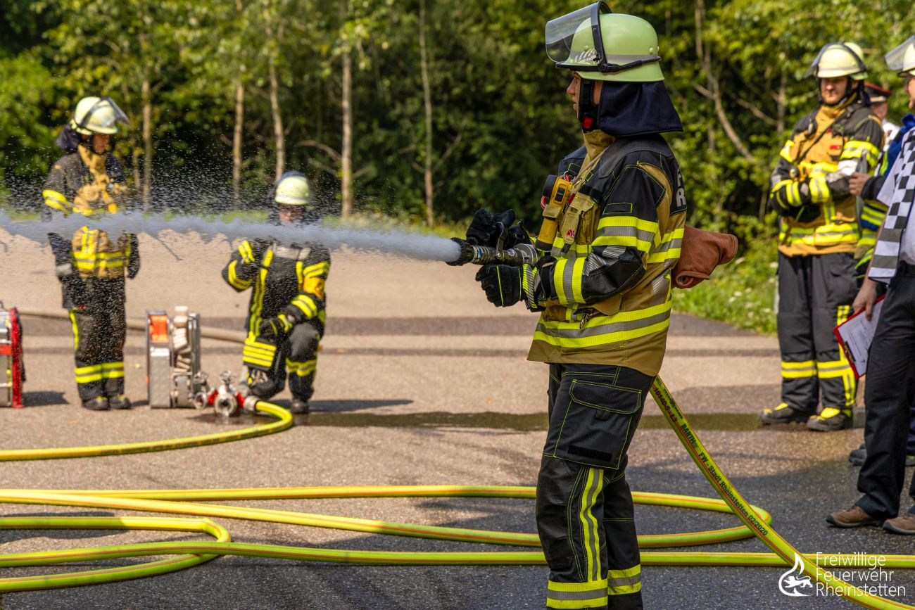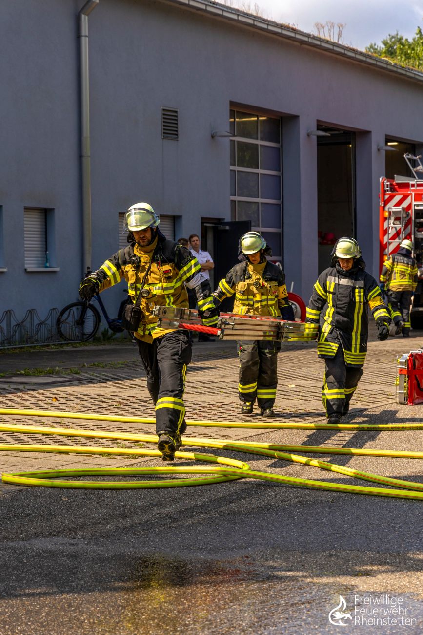 Von Anfang Juni bis Ende Juli 2025 traten 23 motivierte, angehende Feuerwehrleute des Unterkreises Obere Hardt unter der fachlichen Leitung von Unterkreisführer Jürgen Essig und seinem Ausbilderteam die Feuerwehrgrundausbildung „Truppmann Teil 1“ an. Die 16 Teilnehmer und sieben Teilnehmerinnen der freiwilligen Feuerwehren Rheinstetten (elf Personen), Malsch (zehn Personen) und Walzbachtal (zwei Personen) versammelten sich zunächst drei Mal die Woche zum einwöchigen Sprechfunker-Lehrgang im zentralen Feuerwehrhaus Rheinstetten, um im Anschluss ebenfalls drei Mal die Woche in den fünfwöchigen Grundlehrgang zu starten. Dass die Teilnehmenden – bis auf wenige Ausnahmen, die seit frühester Kindheit in der Jugendfeuerwehr aktiv waren – aus Quereinsteigern allen Alters ohne vorherige Feuerwehrerfahrung bestanden, sollte dem nichtsahnenden Ausbilderteam dabei noch einiges abverlangen.
