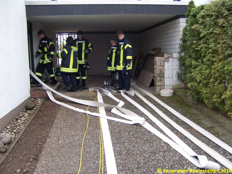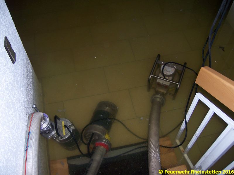 Um die Mittagszeit des Ostermontages, wurden die Kameraden der Abteilung Rheinstetten dann zu ihrem dritten und letzten Einsatz des Osterwochendes gerufen. Die Kameraden der diensthabenden Kleinalarmgruppe wurde zu einem Wasserschaden in den Forchheimer Stadtteil alarmiert. Der Keller eines Wohnhauses stand dort nach einem Wasserrohrbruch einen Meter unter Wasser. Das Haus wurde nach Absprache mit der Feuerwehr durch die EnBW stromlos geschaltet und der Keller mit mehreren Pumpen ausgepumpt. Die Wasserzufuhr zum Haus wurde ebenfalls abgestellt und eine Fachfirma informiert, die die Ursache des Wasserrohbruchs untersuchen und beheben wird. So konnten die Kameraden nach getaner Arbeit wieder einrücken und den Rest des Osterwochenendes gemütlich ausklingen lassen.