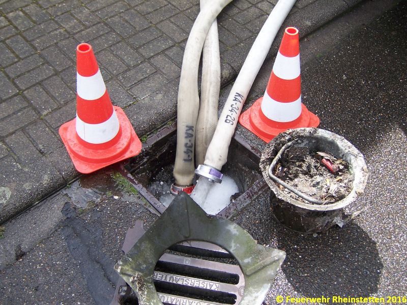 Da die Menge der einfließenden Flüssigkeit nicht nachließ, und auch der Ursprung des Zuflusses nicht ermittelt werden konnten, wurde in Absprache mit der Polizei die Entnahme von Gewässerproben veranlasst. Hierzu wurde die diensthabende Kleinalarmgruppe der Abteilung Rheinstetten mit dem Rüstwagen nachgefordert. Die entnommenen Proben, wurden zur weiteren Untersuchung an die Polizei übergeben. Des weiteren, wurden das Landratsamt und der Fachbereich Abwasser der Stadt Rheinstetten über diesen Einsatz informiert. Ein Mitarbeiter der Stadt Rheinstetten kam vor Ort und leitete in Abstimmung mit dem Landratsamt weitere Maßnahmen ein.